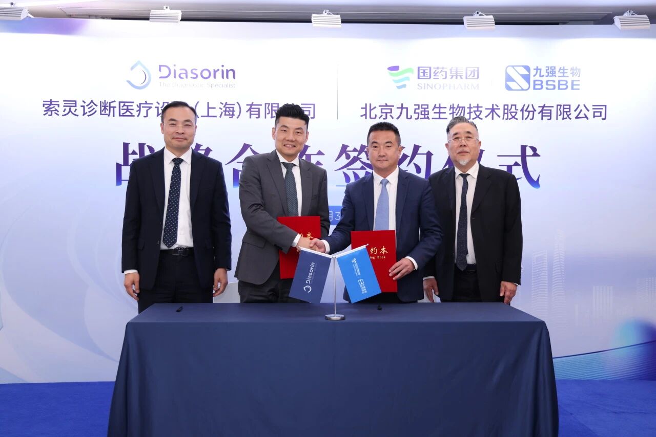 2025年12月3日,國內(nèi)體外診斷領(lǐng)軍企業(yè)北京九強(qiáng)生物技術(shù)股份有限公司與全球知名診斷公司索靈診斷(Diasorin)正式簽署戰(zhàn)略合作協(xié)議。雙方秉持“平等互利、優(yōu)勢(shì)互補(bǔ)、長期共贏”的核心原則,強(qiáng)強(qiáng)聯(lián)合、深度協(xié)同,共同開啟精準(zhǔn)診斷領(lǐng)域創(chuàng)新發(fā)展新篇章,為全球醫(yī)療健康事業(yè)注入強(qiáng)勁動(dòng)力!